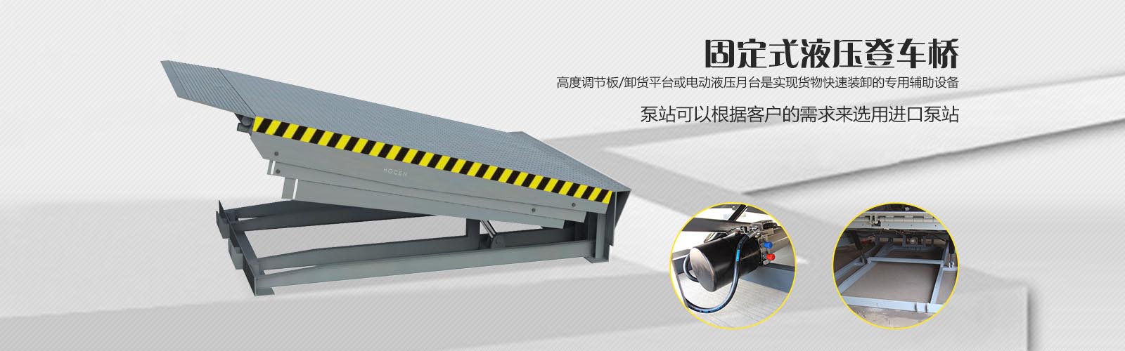 固定式液壓登車橋是實現貨物快速裝卸的專用輔助設備,安裝在月臺、建筑物上,搭接于貨車車廂,調節(jié)月臺、建筑物地面與車廂之間的高度差